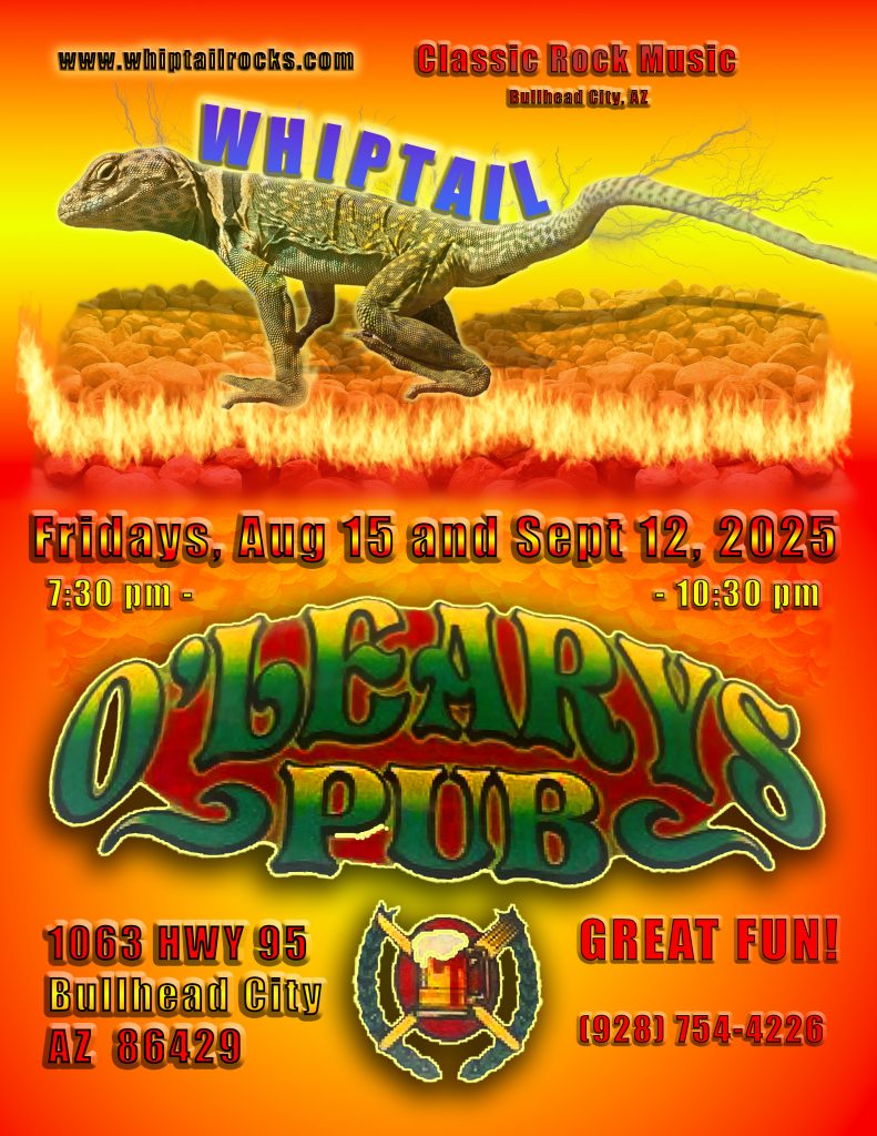 Here’s a flier for our upcoming date at Hooch’s 66 in Topock…